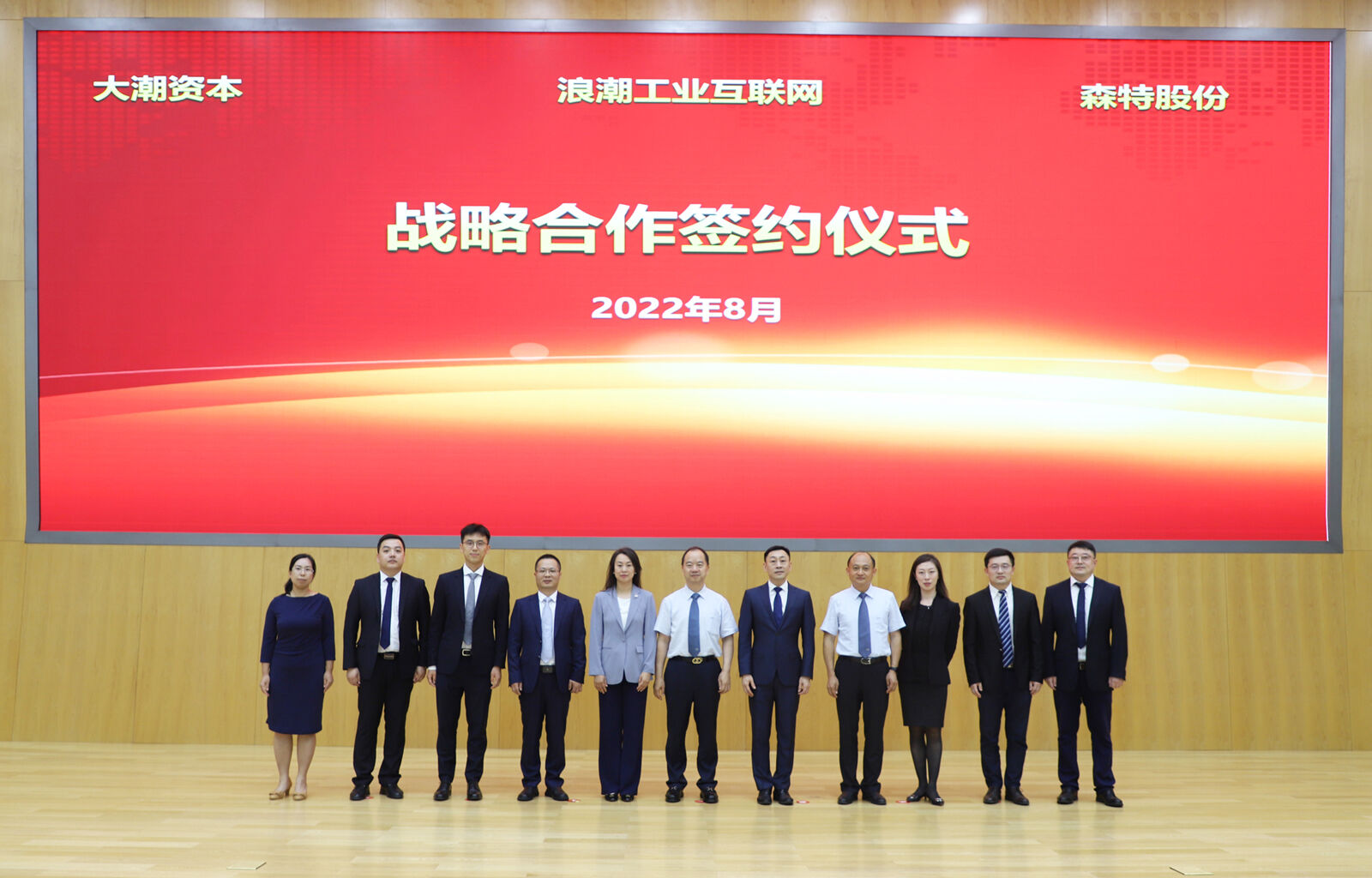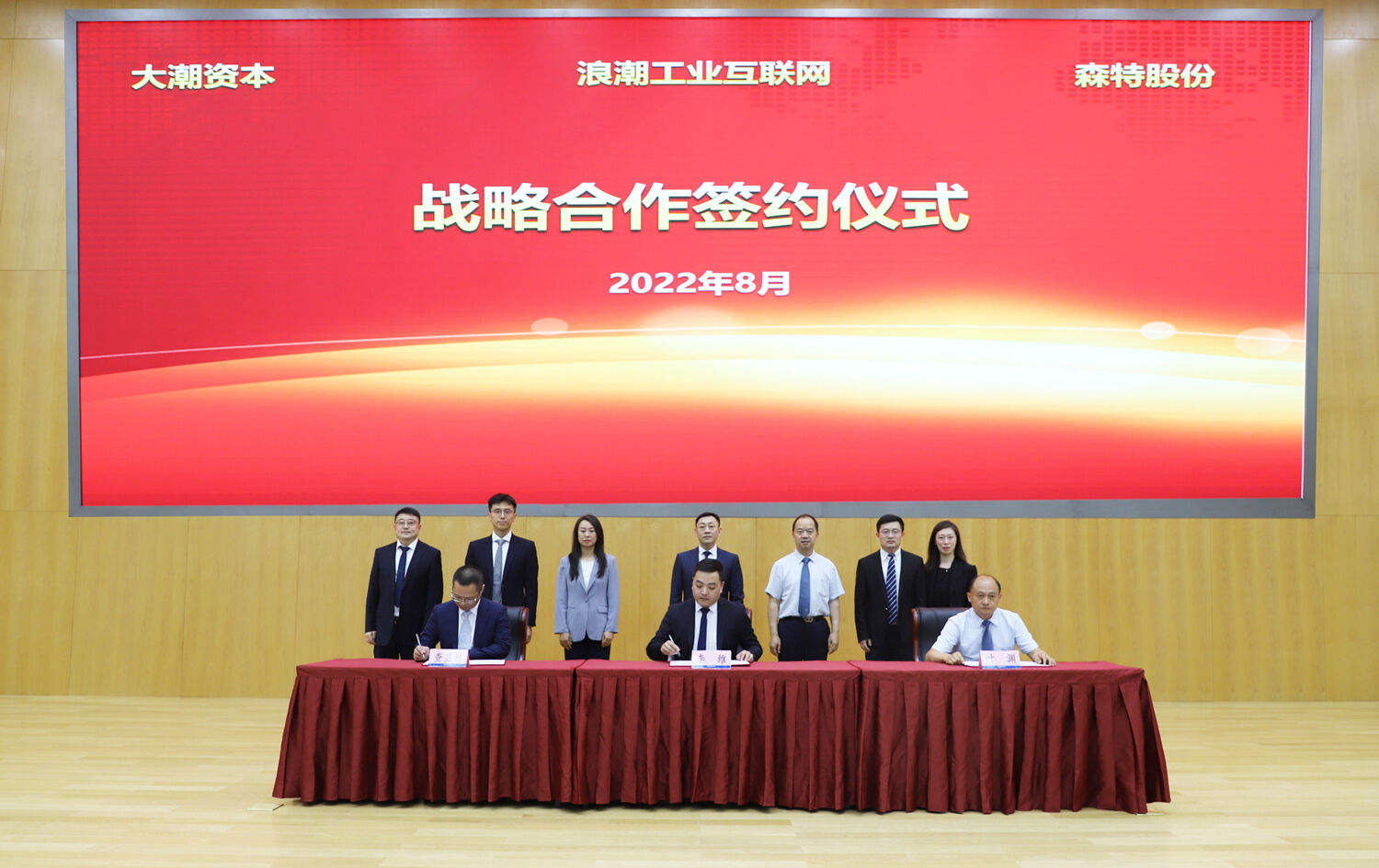 2022年8月19日,浪潮工业互联网股份有限公司、北京大潮资本有限公司与森特士兴集团股份有限公司在山东济南签署战略合作协议。森特股份董事长刘爱森,浪潮集团总工程师、浪潮工业互联网党委书记、董事长肖雪,大潮资本董事长戴晓渊出席签约仪式;森特股份副总经理叶渊,浪潮工业互联网副总经理李维,大潮资本董事总经理查显林分别代表三方签署战略合作协议。